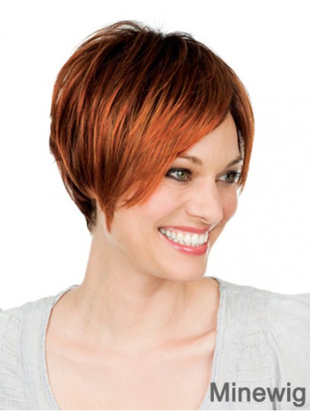 8 inch Auburn Short With Bangs Straight Great Lace Wigs
