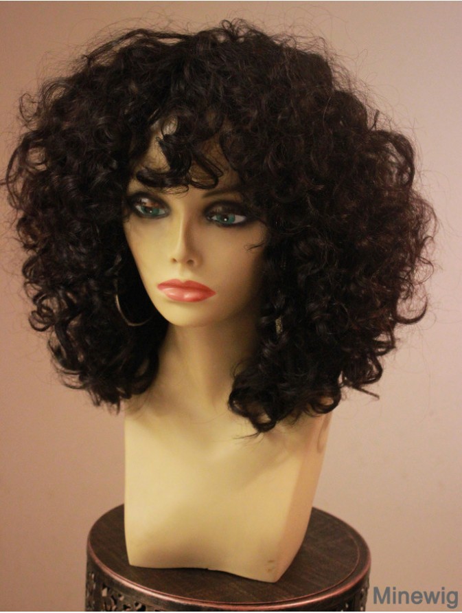 African American Wigs With Bangs Capless Kinky Style Shoulder Length