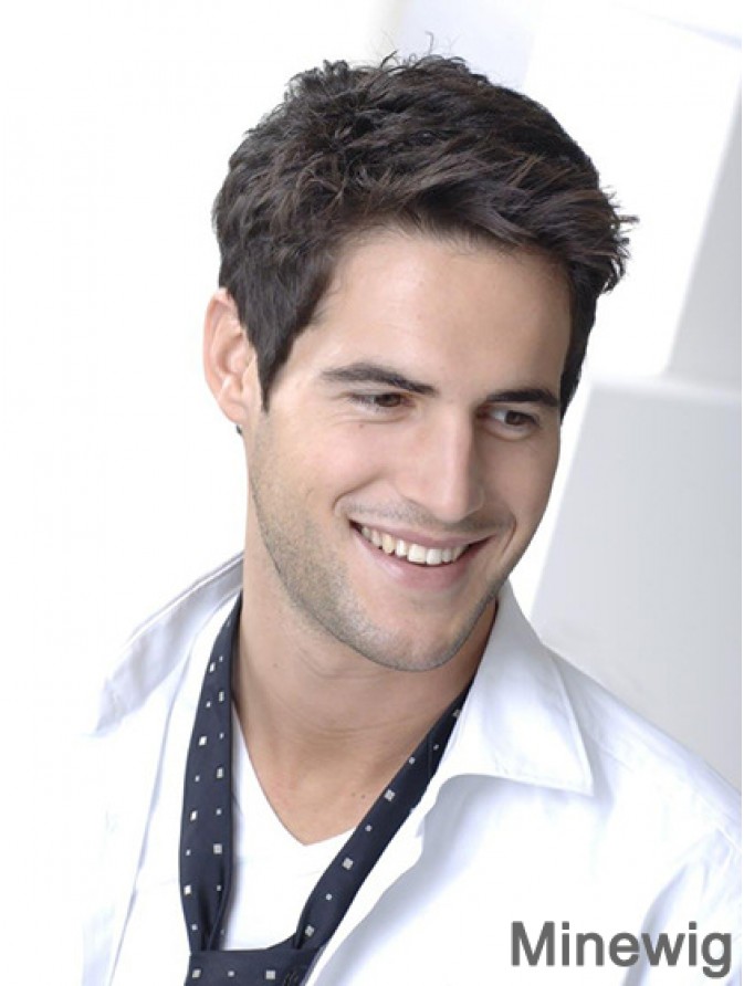 Black Synthetic Cropped Capless Straight Mens Wig For Sale