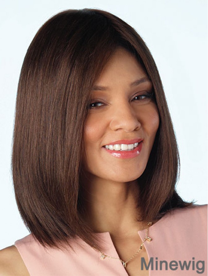 Brown Shoulder Length Ideal Straight Without Bangs Lace Wigs