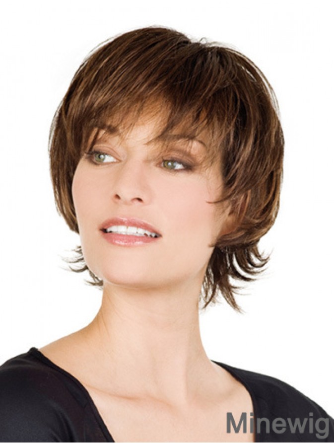 Human Hair Brown With Lace Front Cropped Length Layered Cut