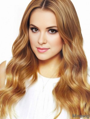 Without Bangs Natural Straight Blonde Long Human Hair Lace Front Wigs
