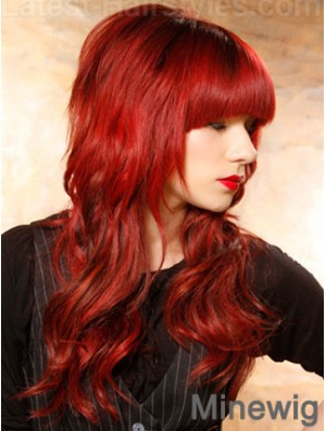 Wavy With Bangs Lace Front Incredible 24 inch Red Long Wigs