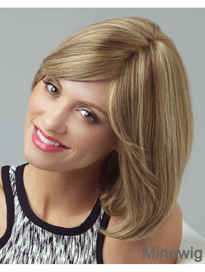 With Bangs Durable Straight Brown Chin Length Human Hair Wigs