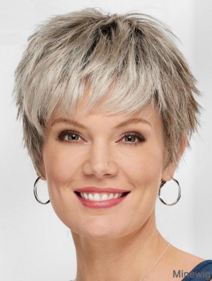Wigs For Elderly Lady Grey Hair With Synthetic Grey Cut Short Length