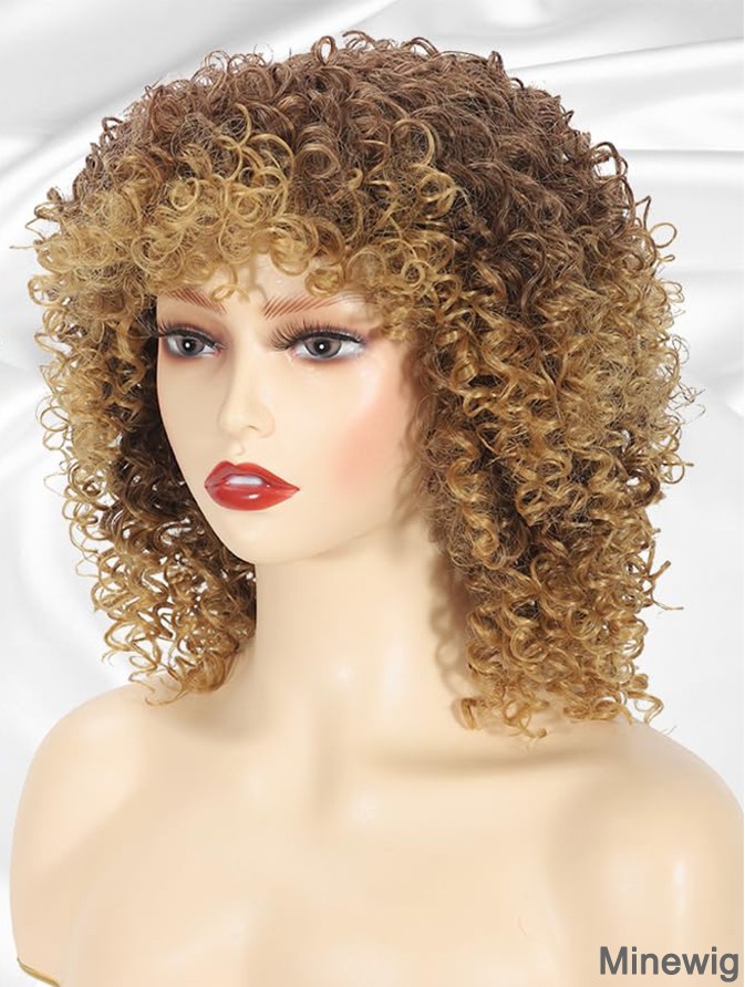 Afro Blonde Curly Wigs Short Kinky Curly Full Wigs Brown Mixed Blonde