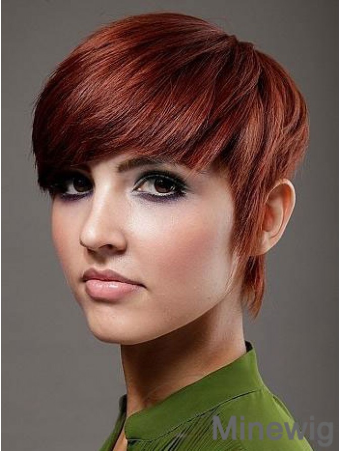 Soft 4 inch Red Cropped Boycuts Wavy Lace Wigs