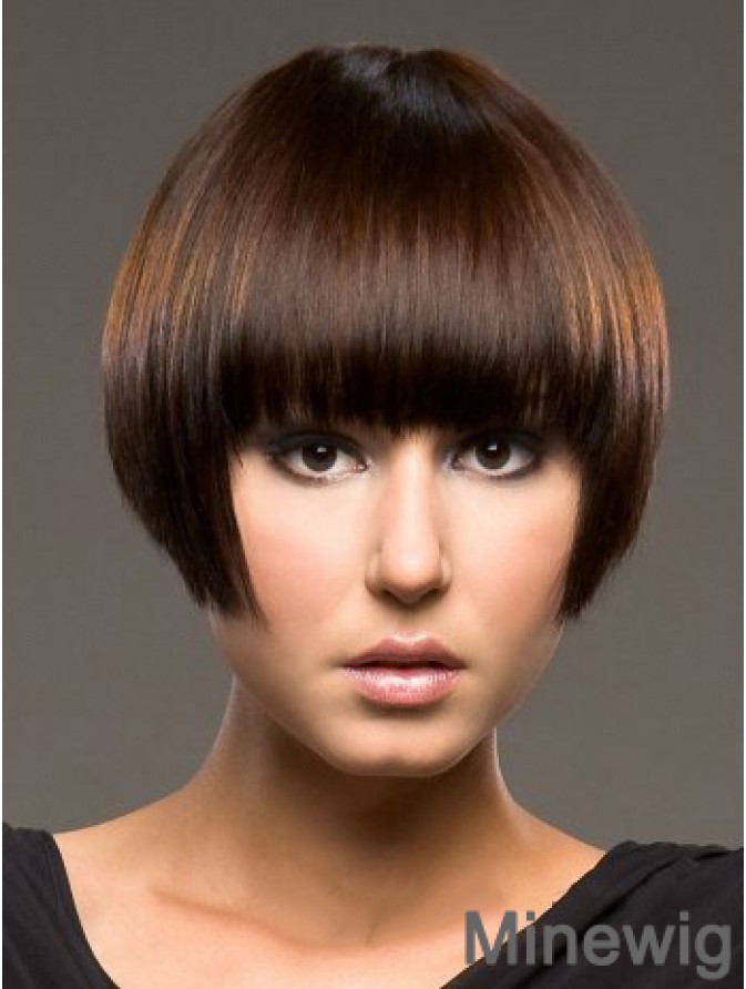 Straight Brown With Bangs 8 inch Mono Top Wigs