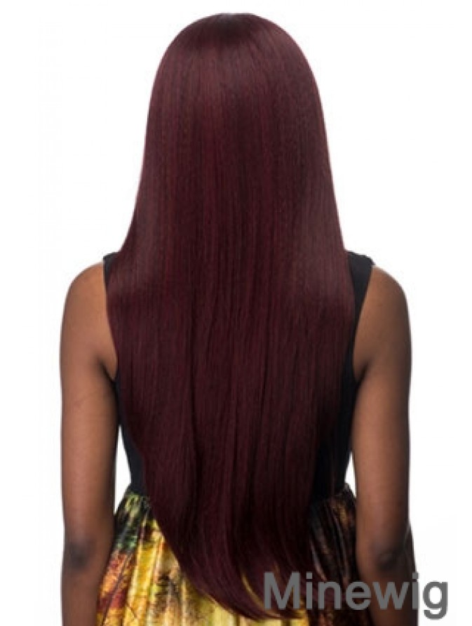 Suitable Red Long Without Bangs Yaki Glueless Lace Front Wigs
